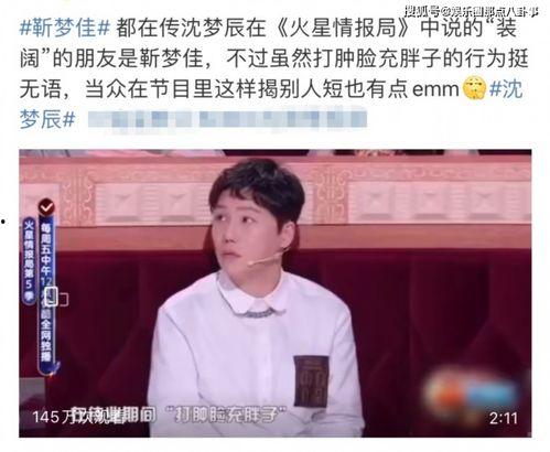 在节目中,沈梦辰被问及感情问题时,她一脸娇羞地表示:“其实,我最近真的有遇到一个特别的人。”此话一出,现场气氛瞬间变得紧张起来。接着,她详细描述了这位神秘对象的种种优点,让人不禁好奇,这究竟是个什么样的人呢?